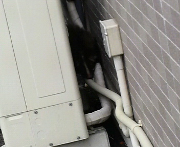 店舗の外においてあるエアコンの室外機の裏に