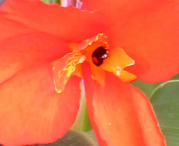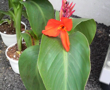 入り口に飾っているカンナの花が咲いてました